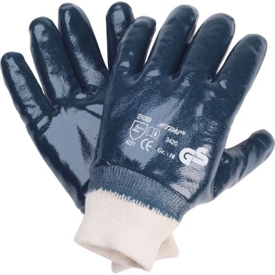NITRAS Nitrilhandschuhe, blau, schwere Ausführung, vollbeschichtet, auf BW-Jersey, mit Strickbund EN420 & EN388 CAT2, TÜV/GS geprüft