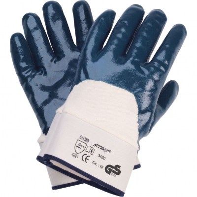 NITRAS Nitrilhandschuhe, blau, schwere Ausführung, teilbeschichtet, auf BW-Jersey, mit Stulpe EN420 & EN388 CAT2, TÜV/GS geprüft
