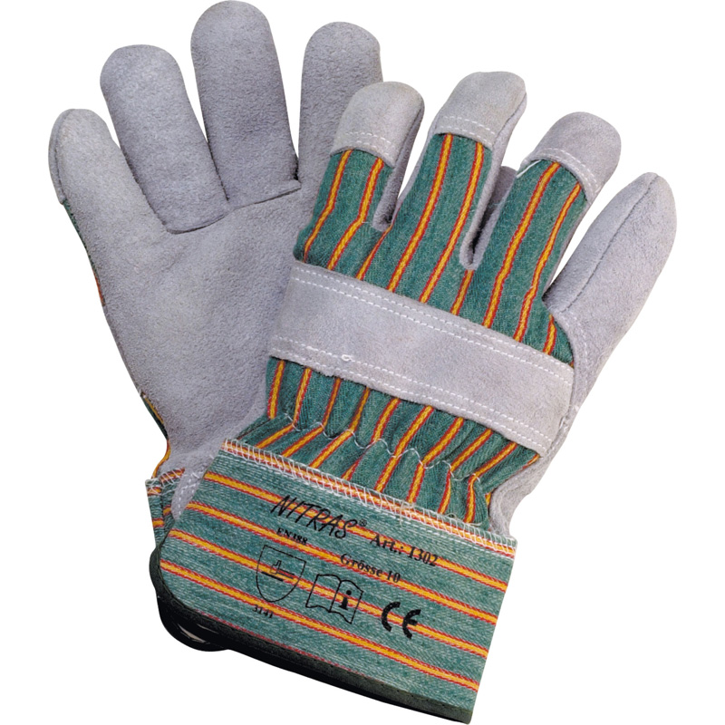1,2 mm min., gestreifter Rücken und gummierte Stulpe, Doppelnähte, Innenhandfutter, EN 388 CAT2